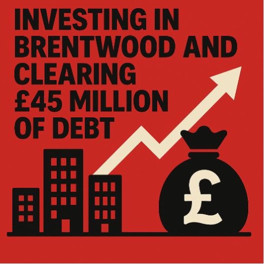 Since 2024, your Labour team has helped deliver the biggest improvement in the Council’s finances for years. £45 million of historic debt has been cleared, saving around £850,000 in interest each year. This frees up public money previously lost to loan interest and reinvests it into services, housing and local priorities. We have balanced the books and funded investments through good commercial management in 2026/27, so Brentwood can invest confidently in its future.